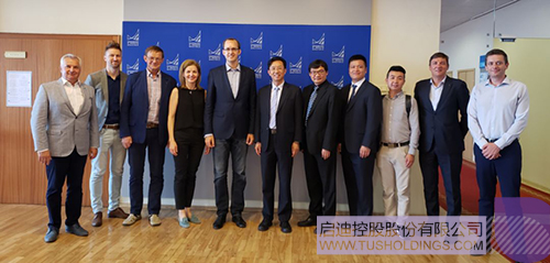 立陶宛國家經濟與創新部副部長烏斯·斯庫奧蒂斯(左五)會見啟迪控股代表團