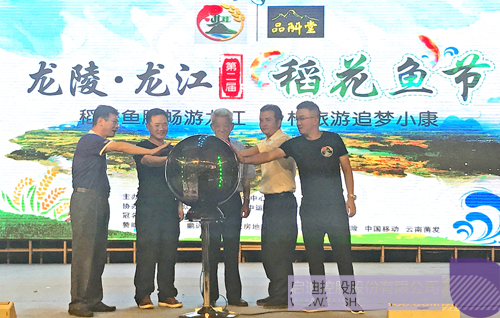 10月1日,啟迪代表團受邀參加第二屆龍陵·龍江“稻花魚節”,王濟武在活動開幕式暨迎賓晚會上致辭,并與龍陵縣委書記段忠華等共同啟動本屆“稻花魚節”。