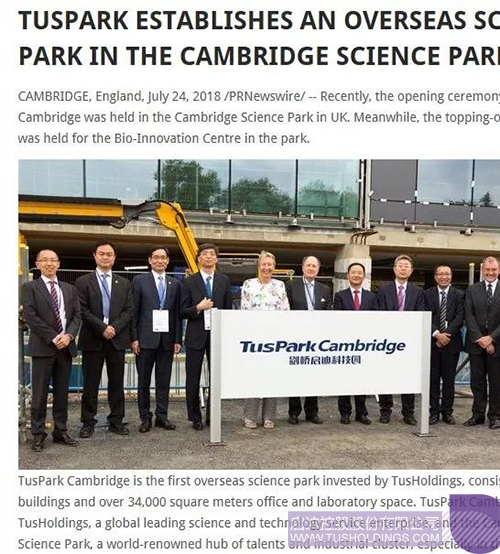 近日,由啟迪控股在英國劍橋投資建設的劍橋啟迪科技園(TusPark?Cambridge)舉辦開幕儀式和園區生命科技創新中心(Bio-InnovationCentre)封頂儀式,該活動在全球范圍內引起廣泛關注,位于美國、法國、意大利、德國、英國、加拿大、瑞士、葡萄牙、俄羅斯、日本、新加坡、韓國、澳大利亞、印度、泰國、印度尼西亞、馬來西亞等國家和中國香港、澳門、臺灣地區的共計數百家媒體對此進行了不同形式的報道。