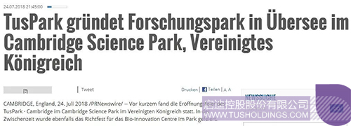 全球數百家媒體報道啟迪控股在英國劍橋投資建設運營科技園區打印